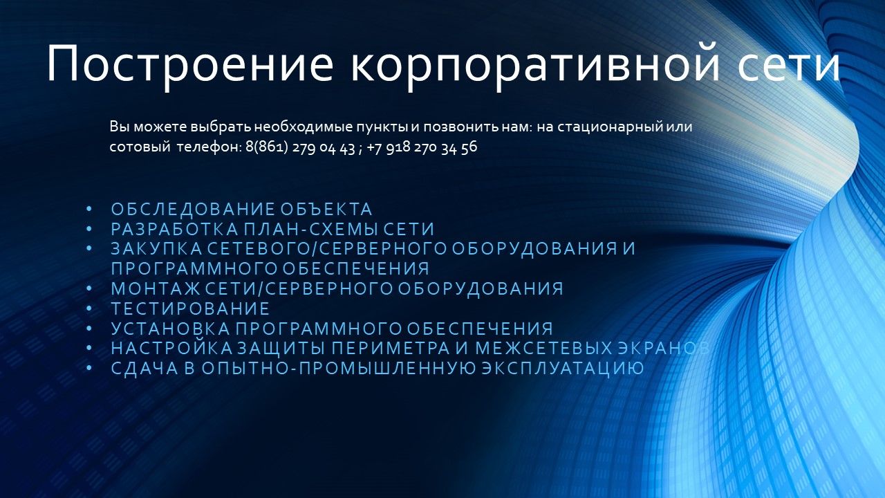 Обустройство корпоративной сети предприятия зависит от тех объектов, которые входят в эту сеть и расстояния между ними. Офисные помещения, производство, склады, структурные подразделения - объединяются посредством кабельных или беспроводных соединений.